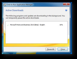 Forma parte del programa Beta de Office para este 2010. Los clientes que quieran usar Microsoft Office, podrán hacerlo con una nueva tecnología llamada Click-to-Run que divide el flujo del software en varias etapas en lugar de descargarlo todo al mismo tiempo. Si tiene éxito, no solo podría transformar la forma de entregar el software, sino que también podría abrir otra forma de negocio y abaratar los productos.